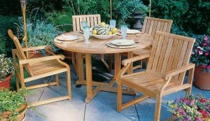 This teak dining group epitomizes all that is best in teak furniture. With gently curving backs and angled seats, these armchairs have been specifically designed for comfort and style, and can be used with or without cushions. This classically styled chair pairs well with many tables for different sized spaces. Pick a fabric for cushions if you wish and the table that works for your space.